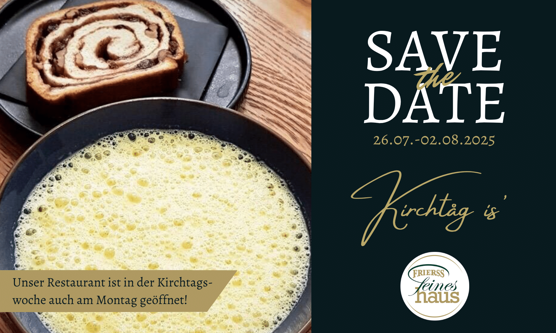 Die Vorfreude auf den Villacher Kirchtag ist groß? Dann sollten Sie unsere beliebte Kirchtagssuppe mit Kärntner Reindling und viele weitere Köstlichkeiten – ab Samstag, 26.07.25 (ab 11:30 Uhr) – keinesfalls verpassen! Übrigens: In der Kirchtagswoche ist unser Restaurant auch am Montag für Sie geöffnet!